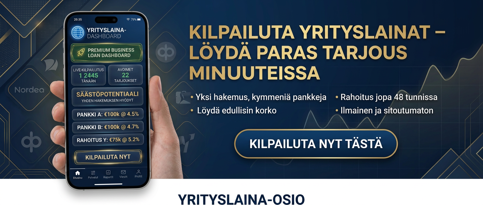 Kilpailutamme lainasi sinulle ilmaiseksi ja haemme Yrityksellesi parhaat lainatarjoukset.